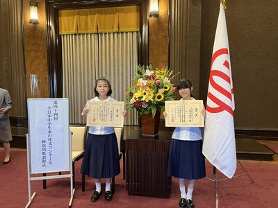 中学1年生が「全日本中学生水の作文コンクール」で表彰されました